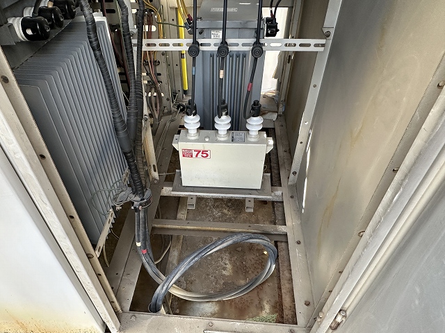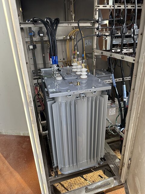 2変の動力トランスは200KVAでしたが、ケーブルの接続点が横についているタイプでした。